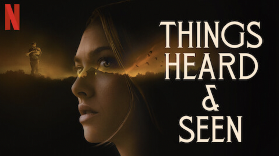 공포영화보다는 스릴러에 가까운 아만다 사이프리드 주연의 허드 앤 씬. 한국어 제목만 보면 무슨 말인지 잘 이해가 되지 않는다. Things Heard & Seen 은 '보이는 것과 들리는 것들'을 의미한다. 영화는 '단언컨대 천상의 것들이 지상의 것들보다 더 현실적이다'라는 문구로 시작한다.
